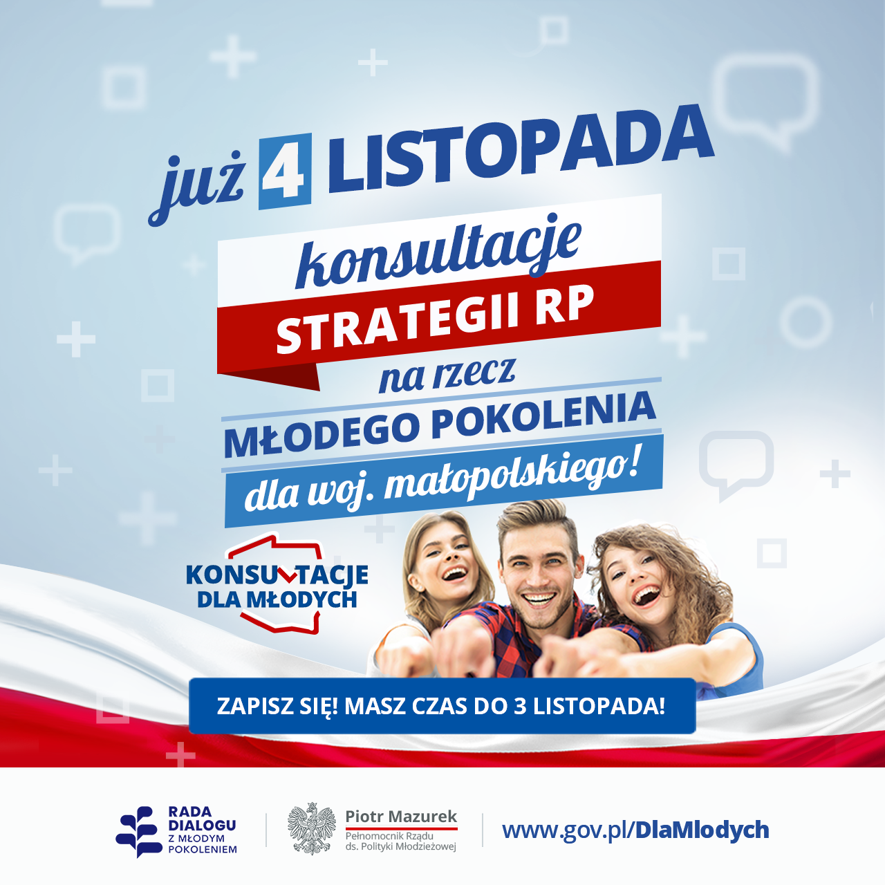 Już 4 listopada odbędzie się kolejna z wojewódzkich konferencji konsultacyjnych, na której wszyscy młodzi ludzie z województwa małopolskiego otrzymają możliwość zgłaszania pomysłów do „Strategii RP na rzecz Młodego Pokolenia”, wieloletniego planu działań państwa w obszarze polityki młodzieżowej. Zapisy przyjmowane będą do 3 listopada (środa) do godziny 12:00. Czytaj dalej paź29