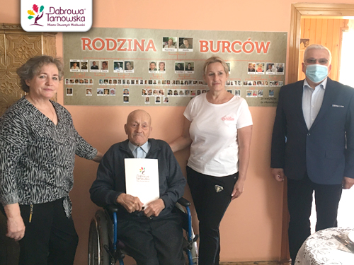 Pan Kazimierz Burzec z Sutkowa jest obecnie najstarszym mieszkańcem gminy Dąbrowa Tarnowska, który 20 kwietnia br. skończył 101 lat. W dniu urodzin niedyspozycja zdrowotna pana Kazimierza i sytuacja pandemiczna uniemożliwiły odwiedziny Burmistrza Dąbrowy Tarnowskiej Krzysztofa Kaczmarskiego. Przełożono je na dogodniejszy termin, którym okazał się poniedziałek 10 maja br. Udało się zorganizować krótkie spotkanie dostojnym jubilatem i jego dwiema córkami Janiną Dobosz i Teresą Pasternak. W spotkaniu wzięła także udział wnuczka pana Kazimierza, Małgorzata Burzec-Wąż na co dzień pracująca w Urzędzie Miejskim w Dąbrowie Tarnowskiej. W imieniu samorządu gminnego Burmistrz przekazał najstarszemu mieszkańcowi naszej „małej ojczyzny” list gratulacyjny i okolicznościowy upominek. Czytaj dalej