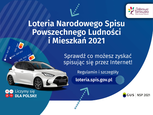 Wraz z Narodowym Spisem Powszechnym Ludności i Mieszkań 2021 rozpoczęła się również Loteria Narodowego Spisu Powszechnego Ludności i Mieszkań 2021. Do udziału w loterii uprawnione są pełnoletnie osoby fizyczne, które spiszą się za pośrednictwem interaktywnej aplikacji dostępnej na stronie internetowej https://spis.gov.pl. Z udziału w Loterii wykluczone są m.in. pracownicy statystyki publicznej oraz członkowie ich najbliższej rodziny (szczegóły w Regulaminie loterii). Regulamin loterii znajduje się na stronie internetowej https://loteria.spis.gov.pl/. Czytaj dalej