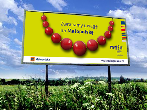 Codziennie każdy z nas mija dziesiątki, a nawet setki reklamowych billboardów. Tak mocno wrosły w nasz krajobraz, że na ogół nie zwracamy na nie szczególnej uwagi. 18 lipca 2013 r. ruszyła nowa turystyczna kampania promocyjna Małopolski oraz Małopolskiego Systemu Informacji Turystycznej (MSIT). Trudno będzie nie zwrócić uwagi na niezwykłe, wielkoformatowe plakaty regionu. Jeszcze nigdy na reklamowym nośniku nie zawieszono… sznura dużych, małopolskich korali. W taki właśnie niekonwencjonalny sposób, Województwo Małopolskie chce zachęcić turystów do korzystania z oferty regionu, a także promować Małopolski System Informacji Turystycznej i portal www.visitmalopolska.pl. 18 lipca br. rozpoczęła się kampania promocyjna zatytułowana „Zwracamy uwagę na Małopolskę”. Akcja ma na celu zachęcanie turystów do odwiedzenia Województwa Małopolskiego oraz wypromowanie Małopolskiego Systemu Informacji Turystycznej jako głównego źródła informacji na temat regionu. Motywem przewodnim jest sznur korali – symbol Województwa Małopolskiego. Czytaj dalej
