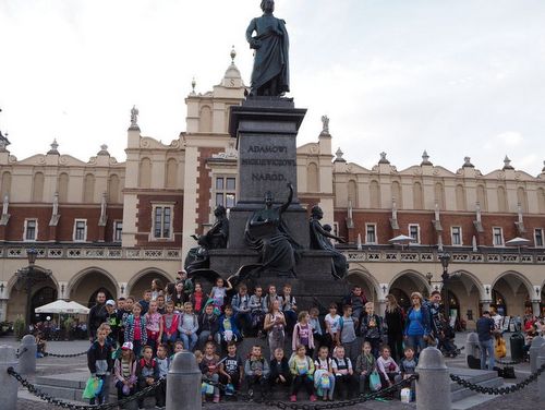18 października uczniowie klas III, IV i V wyjechali na jednodniową wycieczkę do Krakowa zorganizowaną w ramach projektu „Szlakiem historii i kultury polskiej”. Kierownikiem wycieczki był p. Bogusław Marek, a opiekę sprawowali: p. Irena Golonka, p. Justyna Bociek, p. Katarzyna Dziekan-Kozioł, p. Anna Kaczówka i p. Agnieszka Chmura. Przed godziną siódmą zajęliśmy miejsca w autokarze, po czym wyruszyliśmy w drogę, która upłynęła szybko i przyjemnie. Kraków powitał nas wspaniałą pogodą, pięknym słońcem i wysoką temperaturą, jak na tę porę roku. Na parkingu pod Wawelem czekała na nas pani przewodnik Aneta Dziedzic–Lis i wspólnie udaliśmy się na Wzgórze Wawelskie. Zwiedzenie rozpoczęliśmy od Katedry Wawelskiej, która zajmuje wyjątkową pozycję w dziejach Polski i w świadomości narodu polskiego. Jest katedrą koronacyjną królów Polski, miejscem ich wiecznego spoczynku. Pochowani tu też są wielcy wodzowie oraz twórcy polskiej kultury (np. Adam Mickiewicz i Juliusz Słowacki).