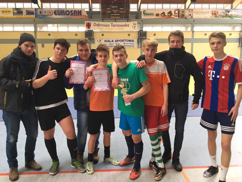 W piątek 03.02.2017 roku na Hali Sportowej im Agaty Mróz – Olszewskiej, w ramach „Sportowych Ferii 2017” przeprowadzony został turniej piłki nożnej dla gimnazjastów. Do rywalizacji o puchar zgłosiło się siedem „dzikich drużyn”: Biała Gwiazda, Nie wiem, Bez Nazwy, Tilt Team, Dream Team, FC Piekarnia, Ogórki Kiszone. Drużyny podzielone zostały na dwie grupy, w których mecze rozegrano w systemie każdy z każdym, awans do rozgrywek półfinałowych otrzymały dwie najlepsze ekipy w grupie. Mecze rozegrano w czasie 1 x 10 min. Nad prawidłowym przebiegiem rywalizacji czuwał sędzia Pan Jan Pisarski oraz Anna Jastrząb. Czytaj dalej