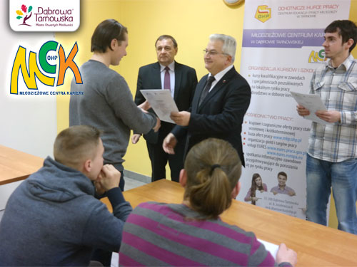 Uroczyste zakończenie kursu zawodowego „Magazynier” organizowanego przez Młodzieżowe Centrum Kariery w Dąbrowie Tarnowskiej stanowiło odpowiedni moment do podsumowania działalności w 2016 roku. W uroczystości tej wzięli udział Burmistrz Dąbrowy Tarnowskiej - Krzysztof Kaczmarski oraz Dyrektor Centrum Edukacji i Pracy Młodzieży OHP w Tarnowie - Adam Potempa, którzy wręczyli zaświadczenia potwierdzające ukończenie kursu i złożyli beneficjentom gratulacje. W ramach kursu „Magazynier” realizowano następujące moduły: obsługa kas fiskalnych i programów fakturujących, gospodarka magazynowa, przepisy ppoż. i zasady BHP w pracy magazyniera, natomiast moduł obsługa wózka jezdniowego i wymiany butli gazowej zakończył egzamin przeprowadzony przez komisję z Urzędu Dozoru Technicznego. Czytaj dalej