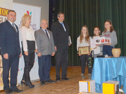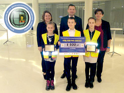 W ubiegłym tygodniu w Centrum Kongresowym ICE w Krakowie odbyła się uroczystość wręczenia wyróżnień i nagród laureatom VII Edycji Małopolskiego Konkursu „Odblaskowa Szkoła”. Podczas gali, Dyrektor Publicznej Szkoły Podstawowej Nr 2 w Dąbrowie Tarnowskiej Anna Fido, koordynator akcji Małgorzata Gawlik oraz przedstawiciele Szkolnego Klubu Bezpieczeństwa „Stopka”- Gabriela Basta, Kamila Jedynak, Szymon Bieś, Ernest Fido - odebrali z rąk podinsp. Krzysztofa Dymury Zastępcy Naczelnika Wydziału Ruchu Drogowego KWP w Krakowie dyplomy oraz nagrodę. W konkursie wzięło udział 450 szkół z województwa małopolskiego. Organizatorami tej akcji byli: Małopolski Urząd Wojewódzki, Urząd Marszałkowski Województwa Marszałkowskiego, Małopolska Wojewódzka Rada Bezpieczeństwa Ruchu Drogowego, Wydział Ruchu Drogowego KWP w Krakowie, Kuratorium Oświaty w Krakowie oraz Krajowe Centrum Bezpieczeństwa Ruchu Drogowego. "Dwójka" pokonała wielu rywali i odebrała nagrodę oraz dwa grawerowane dyplomy: za zajęcie siódmego miejsca wśród małopolskich szkół oraz za zajęcie pierwszego miejsca i specjalne wyróżnienie wśród szkół powiatowych. Czytaj dalej