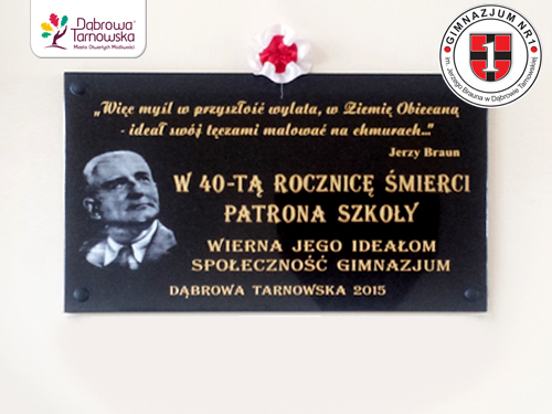 25 września 2015 roku zapisze się złotymi zgłoskami w historii Publicznego Gimnazjum nr 1 im. Jerzego Brauna w Dąbrowie Tarnowskiej. W tym dniu obchodziliśmy uroczystość poświęconą obchodom 40 rocznicy śmierci patrona naszej szkoły Jerzego Brauna. Uroczystości rozpoczęły się w Kościele p.w. M.B. Szkaplerznej w Dąbrowie Tarnowskiej, od uroczystej Mszy Świętej, której przewodniczył Jego Eminencja Biskup Władysław Bobowski w asyście Księdza Proboszcza Stanisława Cyrana, Księdza Prałata Józefa Poremby i Księdza Jacka Janiczka. Kolejną częścią naszej uroczystości było odsłonięcie pamiątkowej tablicy w holu dąbrowskiego gimnazjum. Czytaj dalej