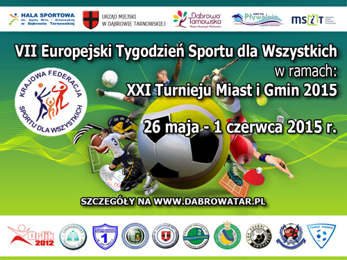 W dniach od 26 maja do 1 czerwca bieżącego roku po raz kolejny Dąbrowa Tarnowska przystąpiła do „Sportowego Turnieju Miast i Gmin” organizowanego w ramach „Europejskiego Tygodnia Sportu dla Wszystkich”, którego głównym celem jest aktywizacja ruchowa jak największej liczby mieszkańców. W ciągu całego tygodnia od Dnia Matki do Dnia Dziecka, mieszkańcy naszej gminy czynnie brali udział w zawodach, imprezach oraz turniejach sportowych, które zostały specjalnie przygotowane na tą okazję. Łącznie, na terenie całej gminy udało nam się zorganizować ponad 250 imprez sportowych (więcej niż w ubiegłym roku) w których wzięło udział kilkanaście tysięcy mieszkańców. Czytaj dalej