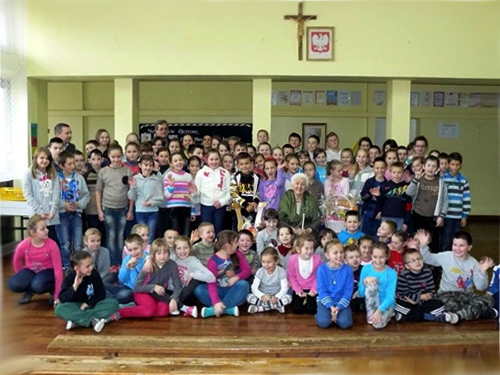 Gdy 5 grudnia rano dowiedzieliśmy się, że za dwie godziny będzie u nas Pani Stefania, w szkole wybuchło spore zamieszanie. Zwykle wcześniej byliśmy powiadamiani o Jej odwiedzinach i mogliśmy się do nich przygotować. Tutaj nie było na to czasu i wszystko odbywało się spontanicznie. Mimo takiego zaskoczenia, udało się nam trochę do tej wizyty – niespodzianki przygotować. W klasach uczniowie wykonywali kolorowe laurki, które Pani Stefania kolekcjonuje, i - jak sama mówiła – przegląda i czyta, gdy tęskni za swoimi wnuczętami ze Smęgorzowa. Pani Dulembowa razem z siostrą Klarissą i towarzyszącą Jej panią pielęgniarką, zjawiły się w naszej szkole przed południem. Ze Smęgorzowa nasi Goście udali się do Dąbrowy Tarnowskiej, gdzie odbyło się spotkanie z Burmistrzem, p. Stanisławem Początkiem, z którym Pani Stefania Dulembowa jest w stałym kontakcie i przyjaźni. Przypominamy, że jest również Honorową Obywatelką Dąbrowy Tarnowskiej. Czytaj dalej