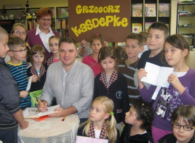 Bohaterowie książek Grzegorza Kasdepke mieszkają nie tylko w bibliotekach, ale także w domowych zaciszach i szkolnych podręcznikach, stąd jego literatura staje się coraz popularniejsza. Dlatego spotkanie z pisarzem było wielką ucztą dla coraz większego grona sympatyków przygód Kuby i Buby, detektywa Pozytywki, Kacpra i innych dziecięcych postaci z jego książek. paź24