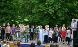 Przez całe niedzielne popołudnie na placu przed Dąbrowskim Domem Kultury najmłodsi bawili się z okazji swojego święta. Przygotowano tu dla nich wiele atrakcji. Imprezę rozpoczęli młodzi aktorzy z zespołu teatralnego „ADHD” działającego w DDK, którzy zaprezentowali skecze z „Kabaretu na Jednej Nodze” Wandy Chotomskiej. Później dzieci bawiły się z animatorami ze Studia Teatralno-Muzycznego „Fama” z Dębicy. Mogły też poszaleć na nadmuchiwanej zjeżdżalni, zjeść watę cukrową, pop-corn. Były także balony i ogromne bańki mydlane.