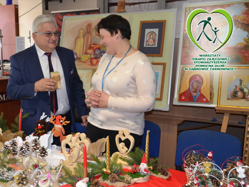 Jak co roku przed Świętami Bożego Narodzenia Warsztaty Terapii Zajęciowej organizują dla mieszkańców Powiatu Dąbrowskiego Kiermasze Bożonarodzeniowe w Urzędzie Starostwa Powiatowego, Urzędzie Miejskim w Dąbrowie Tarnowskiej oraz w Miejskiej Przychodni. W ofercie WTZ-ów znalazły się prace wykonane w ramach zajęć terapeutycznych w pracowniach technicznej i plastycznej: kartki świąteczne, stroiki, choinki, szopki, obrazy na szkle, a także karmniki dla ptaków. Prace naszych podopiecznych cieszyły się jak zwykle dużym zainteresowaniem pracowników urzędów oraz petentów. Swoją obecnością zaszczycili kiermasze m. in. Burmistrz Dąbrowy Tarnowskiej Pan Krzysztof Kaczmarski, Z-ca Burmistrza Pan Stanisław Ryczek, a także Naczelnik Wydziału Rozwoju Lokalnego, Edukacji i Zdrowia Starostwa Powiatowego w Dąbrowie Tarnowskiej Pani Mariola Smolorz. Wszystkim, którzy zechcieli wesprzeć działalność dąbrowskich WTZ przez zakup ozdób świątecznych serdecznie dziękujemy. Środki ze sprzedaży przeznaczone zostaną na rehabilitację społeczną podopiecznych, m.in. hipoterapię, wycieczki krajoznawcze, wyjazdy do teatrów czy muzeum, a także imprezy integracyjne.