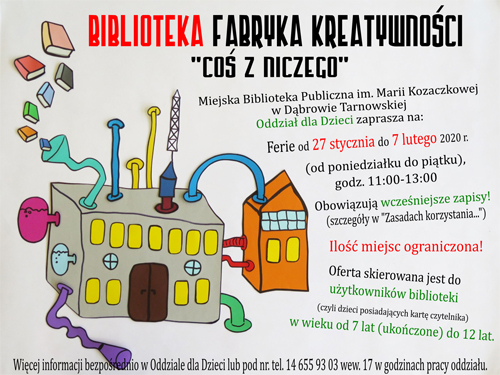 Choć za oknem mamy "piękną wiosnę tej zimy" to za dwa tygodnie oficjalnie rozpoczną się dwutygodniowe ferie zimowe dla dzieci i młodzieży szkół województwa małopolskiego. Podobnie jak w poprzednich latach, aby ten wolny od zajęć szkolnych czas był dla dzieci i młodzieży przebywającej na terenie naszej gminy czasem radosnego, a co najważniejsze bezpiecznego odpoczynku, poszczególne instytucje oświatowe, kulturalne i sportu Dąbrowy Tarnowskiej przygotowały atrakcyjną ofertę zajęć, wśród których każdy będzie mógł znaleźć interesujący dla siebie sposób spędzenia czasu. Dąbrowski Dom Kultury przygotował na ten czas, m.in.: kreatywne zajęcia plastyczne,teatralne i muzyczne w DDK, zajęcia interaktywne w Centrum Osiedlowym oraz gry edukacyjne w Ośrodku Spotkania Kultur. Czytaj dalej