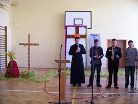 Wielki Tydzień otwiera Niedziela Palmowa. Nazwa tego dnia pochodzi od wprowadzonego w XI w. zwyczaju święcenia palm. Liturgia bowiem wspomina uroczysty wjazd Jezusa do Jerozolimy, bezpośrednio poprzedzający Jego Mękę i Śmierć na Krzyżu. Witające go tłumy rzucały na drogę płaszcze oraz gałązki, wołając: "Hosanna Synowi Dawidowemu". W XI w. pojawił się zwyczaj święcenia palm. Wierni przechowują je przez cały rok, aby w następnym roku mogły zostać spalone na popiół, którym są posypywane nasze głowy w Środę Popielcową. Procesja z palmami jest z jednej strony upamiętnieniem wydarzenia sprzed wieków, z drugiej zaś - naszym kroczeniem wraz z Chrystusem ku ofierze, którą dzisiaj jest Msza święta. Ogłaszając Chrystusa Królem zgadzamy się w ten sposób na to, że nasza droga do Ojca prowadzi zawsze przez krzyż.