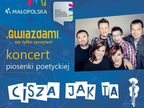 Miejska Biblioteka Publiczna w Dąbrowie Tarnowskiej oraz Dąbrowski Dom Kultury zapraszają na poetycko-muzyczną wędrówkę z zespołem "Cisza jak ta". Już w najbliższą sobotę 22.09.2018r. o godz. 18:00 w Dąbrowskim Domu Kultury wystąpi szóstka muzyków od lat przemierzająca wspólnie szlaki poezji, muzyki i ludzkiej wrażliwości. O spirytus movens tej wędrówki - miłości we wszystkich odcieniach, barwach i aspektach opowiadają słowa autorskie zespołu, oraz wiersze Jonasza Kofty, Agnieszki Osieckiej, Bolesława Leśmiana, Wojtka Bellona, Edwarda Stachury, Haliny Poświatowskiej, Wiesławy Kwinto-Koczan i wielu wielu innych. Będzie to kolejne wydarzenie realizowane w ramach projektu "Z gwiazdami… nie tylko zaczytani" finansowanego ze środków Województwa Małopolskiego w II Edycji Budżetu Obywatelskiego. Czytaj dalej