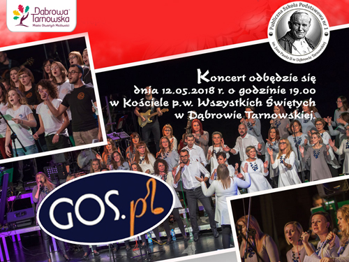 Rada Rodziców Publicznej Szkoły Podstawowej Nr 1 w Dąbrowie Tarnowskiej wraz z Dyrekcją serdecznie zapraszają na koncert Tarnowskiego Chóru GOS.PL z okazji 40 rocznicy wyboru Patrona szkoły Jana Pawła II na Stolicę Piotrową oraz 100. Rocznicy Odzyskania przez Polską Niepodległości. Koncert odbędzie się 12 maja 2018 r. o 19:00 w kościele pw. Wszystkich Świętych w Dąbrowie Tarnowskiej. Patronat honorowy koncertu: Poseł Na Sejm RP Wiesław Krajewski, Burmistrz Dąbrowy Tarnowskiej Krzysztof Kaczmarski oraz Parafia Najświętszej Maryi Panny Szkaplerznej w Dąbrowie Tarnowskiej. Bilety do nabycia w sekretariacie szkoły. Czytaj dalej