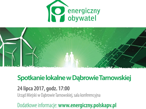 Burmistrz Dąbrowy Tarnowskiej – Krzysztof Kaczmarski wraz z dąbrowskim eko-doradcą Szymonem Lichorobiec serdecznie zapraszają wszystkich mieszkańców Gminy Dąbrowa Tarnowska na spotkanie lokalne w ramach projektu: Energiczny obywatel. Spotkanie zostanie zoorganizowanie 24 lipca o godzinie: 17:00 w Sali konferencyjnej dąbrowskiego Urzędu Miejskiego przez Stowarzyszenie Branży Fotowoltaicznej Polska PV. Czytaj dalej