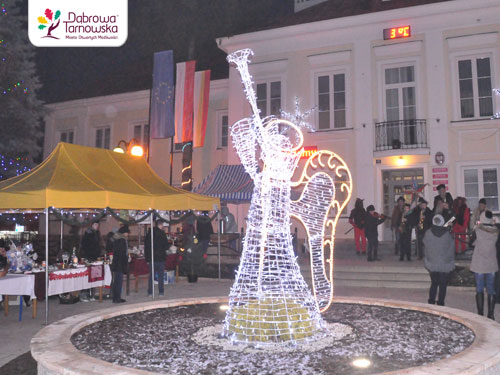 Przed Urzędem Miejskim w Dąbrowie Tarnowskiej pod opiekuńczymi skrzydłami nowego gminnego anioła trwa kiermasz świąteczny. Rozpoczął się już o 9:00 rano i potrwa do 19:00. W zimny słoneczny dzień wszędzie błyszczą stroiki, bombki i inne ozdoby. Smaczne pierniki roztaczają swój świąteczny zapach a wokół rozbrzmiewa dźwięk kolęd. Stowarzyszenia kobiece z Nieczajny Górnej i Smęgorzowa, Stowarzyszenie Twórców Kultury Powiśla Dąbrowskiego, lokalne szkoły, Warsztaty Terapii Zajęciowej, Środowiskowy Dom Samopomocy, koło artystyczne działające w Miejskiej Bibliotece Publicznej oraz wiele innych organizacji przygotowało stoiska zakupowe o tematyce świątecznej. Na drugi już Dąbrowski Kiermasz Bożonarodzeniowy przybili goście z Mędrzechowa, Oleśnicy, Kupienina i innych miejscowości naszego powiatu. Mroźna aura nie jest dzisiaj problemem, gdyż gorącą kawę i herbatę zapewnia Restauracja „Cristal Park”. Zapraszamy do udziału w kiermaszu i do przedświątecznych zakupów. Czytaj dalej