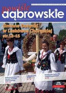 Najnowszy numer miesięcznika „Powiśle Dąbrowskie” jest już dostępny w Dąbrowie Tarnowskiej i całym powiecie dąbrowskim. Można w nim znaleźć obszerne sprawozdanie z czteroletniej kadencji Zarządu Powiatu Dąbrowskiego, która w listopadzie dobiegnie końca, relacje ze Święta Powiśla Dąbrowskiego w Narożnikach oraz Gminnego Święta Plonów w Laskówce Chorąskiej. Wrześniowy numer Powiśla prezentuje także wakacyjną wycieczkę do Juraparku, zorganizowaną dla najmłodszych przez Dąbrowski Dom Kultury oraz Spółdzielnię Mieszkaniową w Dąbrowie Tarnowskiej, przy wsparciu rad osiedlowych. Warte uwagi są zapowiedzi kulturalne na wrzesień i zaproszenie na Święto Ziemniaka, które odbędzie się w Smęgorzowie 14 września.