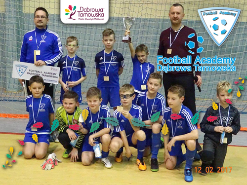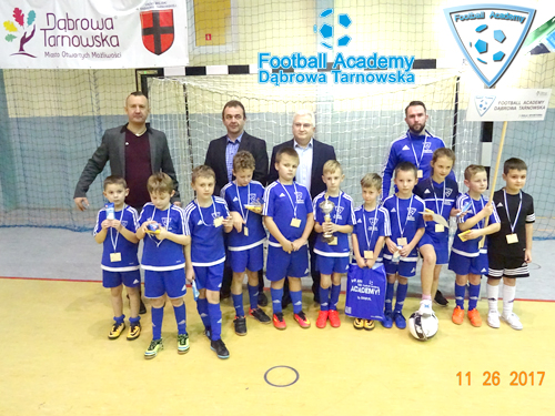 W sobotę 2 grudnia na Hali Sportowej im. Agaty Mróz - Olszewskiej odbył się halowy turniej piłki nożnej dzieci z rocznika 2008 zamykający tegoroczną IV edycję Dąbrowskiej Dębowej Jesieni. W turnieju rocznika 2008 uczestniczyły: Pogoń Staszów, Bruk Bet Termalika, Metal Tarnów, Dąbrovia, AP Mielec, Skawa Wadowice oraz Kadra Regionalna Football Academy i jako gospodarz Dąbrowska Football Academy. Po raz kolejny znakomicie zaprezentowali się nasi wychowankowie którzy po zaciętych meczach wywalczyli pierwsze miejsce w turnieju za co należą się im wielkie brawa i gratulacje. Najlepszym zawodnikiem naszej drużyny wybrany został Kuba Derus!