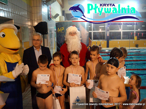 Burmistrz Dąbrowy Tarnowskiej wraz z Referatem Kultury Fizycznej i Sportu oraz Święty Mikołaj serdecznie zapraszają w piątek 8 grudnia na Krytą Pływalnie w Dąbrowie Tarnowskiej. W tym dniu o godzinie 17:30 przeprowadzone zostaną „Mikołajkowe Zawody Pływackie”. Zawody przeprowadzone zostaną w kategoriach wiekowych: przedszkolaki 12,5 m, szkoły podstawowe 25 m, gimnazjum oraz OPEN 50 m. Święty Mikołaj obiecał że zjawi się w tym dniu na Pływalni, z medalami, dyplomami oraz paczkami przygotowanymi od sponsorów: PSB Mrówka Dąbrowa Tarnowska, Sklep Pływacki MP, Bar Tortuga. Zgłoszenia w dniu zawodów na kasie Krytej Pływalni do godziny 17:15 lub telefonicznie 146422078.