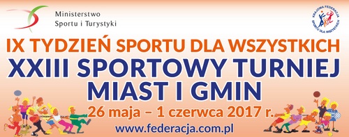 W roku 2017, wzorem lat ubiegłych Krajowa Federacja Sportu dla Wszystkich organizuje kolejny IX Tydzień Sportu dla Wszystkich, w ramach którego zostanie rozegrany XXIII Sportowy Turniej Miast i Gmin. Niezmiennie głównym celem imprezy jest aktywizacja ruchowa jak największej liczby naszych obywateli, szczególnie tych, którzy nie uprawiają sportu, nie ćwiczą codziennie, nie prowadzą aktywnego fizycznie trybu życia. Gmina Dąbrowa Tarnowska zamierza aktywnie uczestniczyć w kolejnej akcji, organizując w terminie od 26 maja do 1 czerwca (od Dnia Matki do Dnia Dziecka), turnieje, rozgrywki sportowe i zajęcia o charakterze sportowo-rekreacyjnym. Gmina Dąbrowa Tarnowska od lat z sukcesami uczestniczy w sportowej rywalizacji. W ubiegłym roku wywalczyliśmy pierwsze miejsce w kategorii samorządów o liczebności od 15 do 40 tyś mieszkańców. Aby podtrzymać naszą dobrą lokatę, niezbędny jest udział i zaangażowanie w akcję na naszym terenie wszystkich instytucji życia publicznego, organizacji społecznych i wolontariuszy oraz oczywiście wszystkich entuzjastów sportu. Czytaj dalej