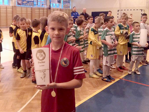 W sobotę 10 grudnia na Hali Sportowej Unii Tarnów, rozegrany został halowy turniej piłki nożnej juniorów. W rozgrywkach udział wzięło osiem drużyn, wśród których nie zabrakło również drużyny Dąbrovii Dabrowy Tarnowskiej. Rozgrywki przeprowadzone zostały w systemie każdy z każdym. Turniej stał na bardzo wysokim poziomie piłkarskim. W klasyfikacji końcowej drużyna MLKS Dąbrovia uplasowała się na trzecim miejscu, a Jakub Kot został wybrany najlepszym zawodnikiem turnieju. Kapitan drużyny odebrał pamiątkowy puchar oraz dyplom, a do Jakuba trafiła statuetka. To kolejny sukces naszej juniorskiej drużyny. Gratulujemy oraz życzymy dalszych sukcesów. Czytaj dalej