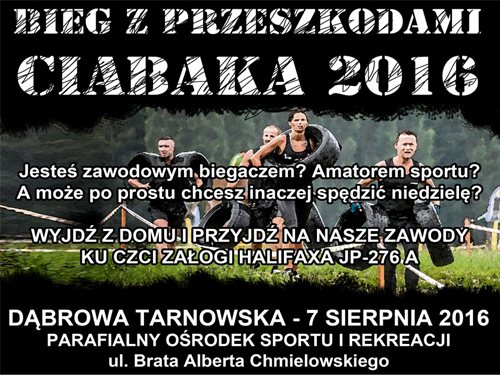 Od wielu lat w Dąbrowie Tarnowskiej czcimy pamięć Załogi RCAF Halifaxa JP-276A. Co roku wspólnie z dąbrowską Parafią NMP Szkaplerznej oraz Starostwem Powiatowym organizowany jest Apel Poległych przy pomniku załogi kpt. Arnolda Blynna na dąbrowskim cmentarzu. W tym roku młodzi dąbrowianie chcą uczcić poległych młodych lotników alianckich na sportowo. Związek Strzelecki „Strzelec” Józefa Piłsudskiego JS 2083 im. Gen. Mariana Kukiela w Dąbrowie Tarnowskiej pragnie zaprosić na bieg z przeszkodami CIABAKA 2016 ku czci załogi Halifaxa JP-276A. Współorganizatorem tych zawodów jest Urząd Miejski w Dąbrowie Tarnowskiej oraz Run Team Dąbrowa Tarnowska. Zarys zawodów jest następujący: zawodnicy zostaną podzieleni na czteroosobowe grupy, które będą biegły najpierw 1.5km, a potem 1km trasą z przeszkodami. Pierwsze dwie osoby będą przechodziły do kolejnego etapu. Ostatni etap to bieg jeden na jeden po 500m trasie. Etap ten wyłoni zwycięzcę. Trasa zostanie przygotowana tak, aby nawet osoba nie biegająca dała radę ją przebyć. Założeniem jest to, aby mile spędzić niedzielę. Czytaj dalej