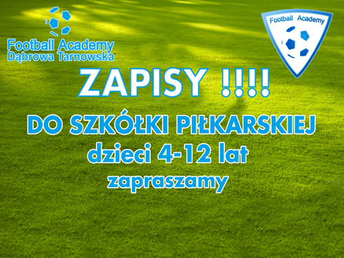 Szkółka Piłkarska Football Academy Dąbrowa Tarnowska ogłasza nowy nabór zawodników. Zapraszamy dzieci w wieku 4-12 lat. oferujemy najmłodszym zawodnikom i zawodniczkom przede wszystkim trening przez zabawę oraz edukację poprzez sport w duchu zasad fair play. Najważniejsze jest dla nas zadowolenie dziecka. Podstawową misją Football Academy jest budowa idealnego dla rozwoju dziecka- bezpiecznego środowiska piłkarskiego w atmosferze zabawy i przyjaźni. Nie są Państwo pewni czy dziecku spodobają się zajęcia Football Academy??? Zapraszam do udziału w pierwszych dwóch bezpłatnych treningach. Czytaj dalej