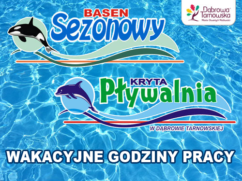Uprzejmie informujemy, że w okresie wakacji, tj. w dniach od 25 czerwca do 31 sierpnia 2016 roku, Kryta Pływalnia będzie czynna w godzinach od 10:00 do 22:00. Zawiadamiamy jednocześnie, że otwarcie Basenu Odkrytego / Sezonowego planujemy w dniu 25 czerwca br. Serdecznie zapraszamy w godzinach od 10:00 do 20:00 na plażowanie, rekreację i kąpiele „pod chmurką” na terenie dąbrowskiego Centrum Sportowo - Konferencyjnego przy ul. Sportowej 4 w Dąbrowie Tarnowskiej. Natomiast coroczna „przerwa technologiczna” na terenie Krytej Pływalni jest planowana w okresie od 1 do 14 sierpnia 2016 roku. Czytaj dalej
