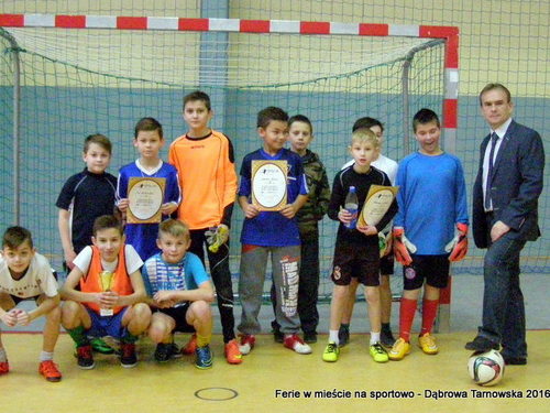 Ferie zimowe 2016 zbliżają się ku końcowi ale na Hali Sportowej im Agaty Mróz – Olszewskiej zmagania młodych adeptów piłki nożnej trwają w najlepsze. W środę 27 stycznia od godziny 9:00 przeprowadzony został Turniej Piłki Nożnej o puchar Burmistrza Dąbrowy Tarnowskiej. W zmaganiach udział wzięły trzy drużyny: Dream Team, FC Kakauko, FC Ziemniaki. Zwycięzcą turnieju została drużyna FC Kakauko. Rywalizację rozegrano w systemie każdy z każdym w czasie 2 x 10 minut. Nad prawidłowym przebiegiem turnieju czuwał sędzia Jarosław Sowa. Czytaj dalej