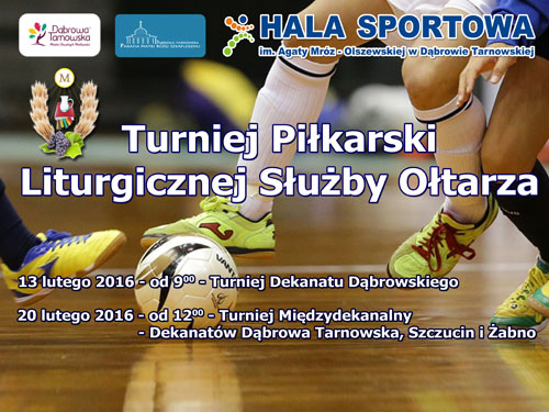 W najbliższe dwie soboty, tj. 13 i 20 lutego br. na Hali Sportowej im. Agaty Mróz – Olszewskiej w Dąbrowie Tarnowskiej rozegrane będą Turnieje Piłkarskie Liturgicznej Służby Ołtarza. 13 lutego br. od godz. 9:00 w zawodach rywalizować będą ministranci i lektorzy reprezentujące parafie Dekanatu Dąbrowa Tarnowska. Tydzień później - 20 lutego, tym razem od 12:00 rozpoczną zawody zwycięskie drużyny z dekanatów: dąbrowskiego, szczucińskiego i żabieńskiego, aby z pośród siebie wyłonić zespoły, które będą walczyć w Turnieju Diecezjalnym LSO - planowany na 27.02 w Brzesku. Na turniej zapraszają ks. Proboszcz Stanisław Cyran i Burmistrz Dąbrowy Tarnowskiej Krzysztof Kaczmarski. Przypominamy, że drużyna dąbrowskich ministrantów pielęgnuje tradycję swoich starszych kolegów, którzy w 2013 r. wywalczyli Mistrzostwo Diecezji Tarnowskiej. Zapraszamy do kibicowania! Czytaj dalej