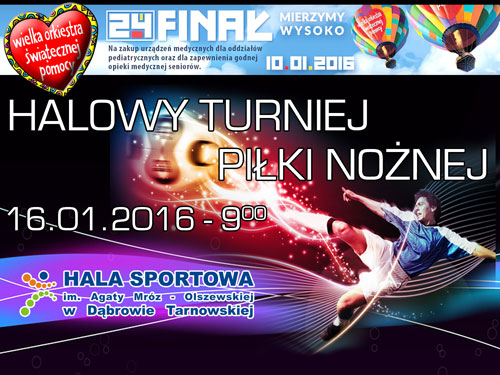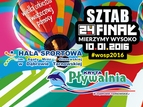 Zwyczajem poprzednich finałów Wielkiej Orkiestry Świątecznej Pomocy w Dąbrowie Tarnowskiej również w styczniu 2016 r. odbędą się 3 turnieje sportowe, z których dochód zasili konto Fundacji WOŚP. Odbędą się zawody amatorskie w pływaniu (Kryta Pływalnia) oraz siatkarski i halowej piłki nożnej (Hala sportowa im. Agaty Mróz-Olszewskiej). Współorganizatorami są: Referat Kultury Fizycznej i Sportu Urzędu Miejskiego w Dąbrowie Tarnowskiej oraz Dąbrowski Dom Kultury, w przeprowadzenie turniejów zaangażują się wolontariusze sztabu działającego w DDK oraz sędziowie – społecznicy. Czytaj dalej