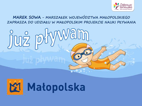 Gmina Dąbrowa Tarnowska zagospodarowała czas wolny dla dzieci i młodzieży organizując zajęcia rekreacyjno-sportowe pod nazwą „Już pływam”. Środki finansowe na ten cel pochodzą z budżetu Marszałka Województwa Małopolskiego i ze środków własnych gminy. Miejscem realizacji projektu „Już pływam” jest Kryta Pływalnia w Dąbrowie Tarnowskiej, ulica Sportowa 4. Termin realizacji projektu: od 07.09.2015 do 30.11.2015 roku. Czytaj dalej