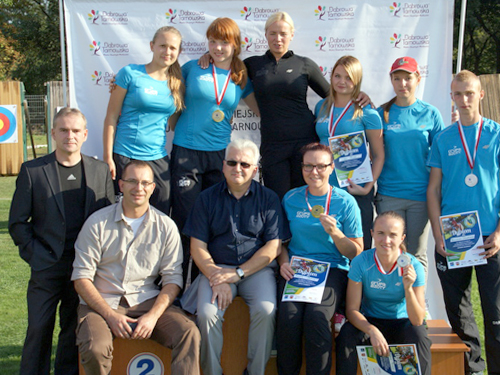 W sobotnie przedpołudnie na stadion „Dąbrovii” zjechali się łucznicy z całej Polski, żeby rywalizować w „Ogólnopolskim Turnieju Klasyfikacyjnym”. Równocześnie odbyły się Mistrzostwa Małopolski w kategorii senior i junior. Blisko stu zawodników i zawodniczek przy pięknej pogodzie, wręcz idealnej w tej dyscyplinie sportu, strzelało na czterech dystansach w zależności od kategorii wiekowej. Kadra „Dąbrovii” spisała się dobrze. Szczególnie dobrze wypadły kobiety, które regularnie wychodziły do dekoracji. Najlepiej wypadła Gabriela Kłos-Kufel, która stanęła dwukrotnie na najwyższym stopniu podium. Wygrała w kategorii kadetek strzelając wysoki wynik, ustanawiając tym samym swój rekord życiowy. W Mistrzostwach Małopolski dąbrowscy zawodnicy potwierdzali raz za razem, że są silną drużyną. Wśród kadetów, srebrny medal zdobył Przemysław Gołębiowski oraz tytuł Wicemistrza Małopolski na 2015 rok. U kadetek wygrała wspomniana Gabriela. Natomiast wśród kobiet-OPEN prawdziwą dominację pokazały zawodniczki „Dąbrovii”. Złoty medal powędrował do Agaty Bulwy, srebrny do Katarzyna Mickiewicz, a brązowy do Lidii Milas, Ponadto na czwartym miejscu uplasowała się Małgorzata Mickiewicz, a na szóstym Anna Forgiel. Czytaj dalej
