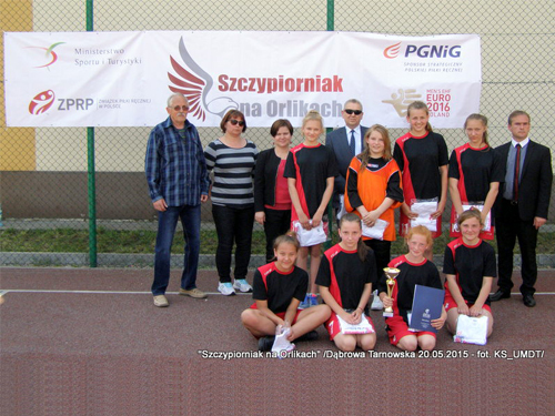 W środę 20.05.2015 roku po raz kolejny spotkaliśmy się na obiektach sportowych przy Szkole Podstawowej Nr 2 w Dąbrowie Tarnowskiej aby wyłonić najlepszą drużynę w powiecie w rozgrywkach „Szczypiorniak na Orlikach”. Pomimo niepewnej pogody i nocnych opadów deszczu rozgrywki, zgodnie z nazwą turnieju, zdecydowano się rozegrać na świeżym powietrzu na boisku o nawierzchni poliuretanowej - takiej jak na Orlikach. Szczęśliwie pogoda dopisała i całe zawody przebiegała przy słonecznej aurze. Czytaj dalej