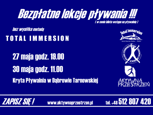 "Aktywna Przestrzeń” i miejski Referat Sportu zapraszają na bezpłatne lekcje pływania metodą Total Immersion w ramach Europejskiego Tygodnia Sportu.