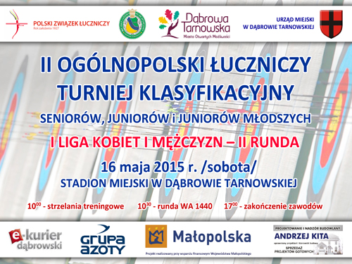 W trzech miejscach Polski, w tym samym dniu rozgrywany był "Ogólnopolski Turniej Klasyfikacyjny". Do Dąbrowy Tarnowskiej przyjechało 15 klubów z południowej części kraju. Zawodnicy rywalizowali w konkurencji WA 1440 strzelając po 36 strzał na czterech odległościach odpowiednio wg kategorii wiekowej, co dało końcową klasyfikację. Dekoracji zwycięzców dokonał Zastępca Burmistrza Dąbrowy Tarnowskiej Stanisław Ryczek. Najlepsi zawodnicy i zawodniczki otrzymali dyplomy oraz nagrody rzeczowe ufundowane przez "Grupę Azoty" oraz klub "Dąbrovia". Najlepiej z zawodników MLKS Dąbrovia Dabrowa Tarnowska zaprezentował się Grzegorz Warias zajmując I miejsce w kategorii juniorów młodszych, zdobywając 1266 punktów. W imprezie wystartowało blisko 70 zawodników. Czytaj dalej