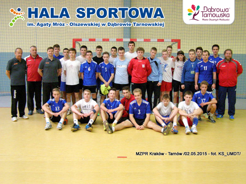 W ramach imprez towarzyszących obchodom 224 rocznicy uchwalenia Konstytucji 3 Maja, wszyscy sympatycy piłki ręcznej w naszym mieście mogli w sobotnie przedpołudnie 2 maja obejrzeć pokazowy mecz pomiędzy juniorskimi reprezentacjami Małopolskiego Związku Piłki Ręcznej oraz reprezentacją Tarnowa. Pojedynek ten odbył się oczywiście w Hali Sportowej im Agaty Mróz – Olszewskiej w Dąbrowie Tarnowskiej. Z racji „pokazowej” formy spotkania, drużyny rywalizowały w nietypowym dla szczypiorniaka czasie 1 godziny i 20 minut, tj. 4 kwarty po 20 minut. Sędzią był V-ce Prezes MZPR Pan Włodzimierz Łabno. Pojedynek zakończył się wyraźnym zwycięstwem gości z Krakowa w stosunku 54 do 43 i obfitował w kapitalne akcje i niezwykłe zaangażowanie do ostatnich sekund. Czytaj dalej