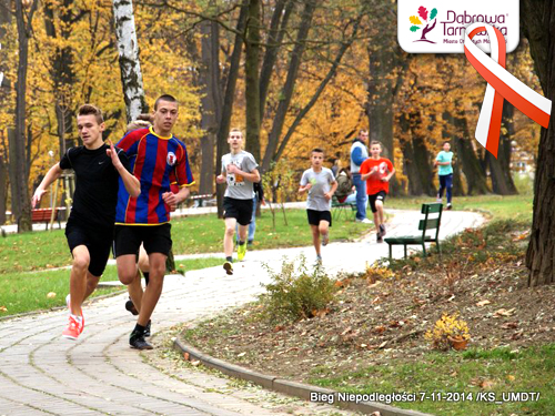 W samo południe w parku miejskim pod Pomnikiem Poległych, kierownik Referatu Kultury Fizycznej i Sportu Witold Reczek przywitał wszystkich przybyłych zawodników, uczniów szkół podstawowy, gimnazjalnych i ponadgimnazjalnych oraz ich opiekunów, którzy przybyli uczcić Narodowe Święto - „Biegiem Niepodległości”.