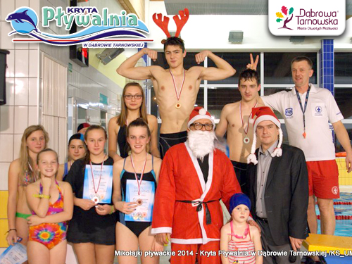 Serdecznie zapraszamy dzieci, młodzież i dorosłych na Mikołajkowe Zawody Pływackie, które odbędą się w piątek 5 grudnia 2014 o godzinie 17:30 na obiekcie Krytej Pływalni w Dąbrowie Tarnowskiej. Zawody przeprowadzone zostaną w stylu dowolnym w kategoriach wiekowych: przedszkolaki 12,5 metrów, szkoły podstawowe 25 metrów, gimnazjum oraz OPEN 50 metrów. Święty Mikołaj obiecał zjawić się w tym dniu na basenie. Będzie czekał na zawodników z medalami oraz słodyczami. Zgłoszenia w dniu zawodów, w kasie Krytej Pływalni od godziny 17:00. Wstęp dla zawodników i kibiców wolny. Czytaj dalej