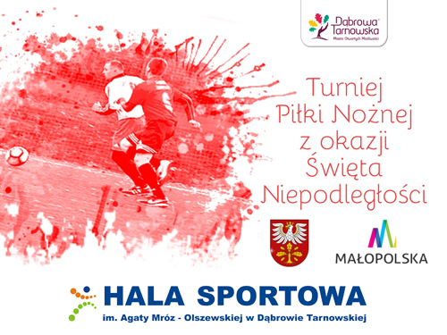 Stowarzyszenie Samorządów Powiatu Dąbrowskiego serdecznie zaprasza wszystkich mieszkańców powiatu dąbrowskiego do wspólnego kibicowania drużynom biorącym udział w Turnieju Piłki Nożnej z okazji Święta Niepodległości. Mecze rozegrane zostaną w sobotę, 9 listopada 2019 r., na Hali sportowej im. Agaty Mróz-Olszewskiej w Dąbrowie Tarnowskiej. Oficjalne rozpoczęcie Turnieju przewidziane jest na godz. 13:00. Podczas Turnieju wszyscy kibice i zawodnicy będą mogli wziąć udział w konkursie ogólnej wiedzy historycznej na temat okresu zaborów i wydarzeń prowadzących do odzyskania przez Polskę niepodległości. Dla uczestników konkursu przewidziano drobne upominki, a dla wszystkich kibiców - gorące napoje. Czytaj dalej
