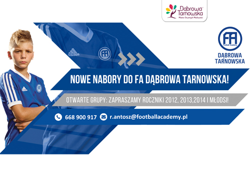 MLKS „Dąbrovia” Dąbrowa Tarnowska ogłasza nabór do sekcji piłkarskich z roczników od 2009 – 2013. Są to sekcje „Orlików”, „Żaków” i oraz najmłodszych „Skrzatów”. Do drużyny „Skrzatów” zapraszamy dzieci z rocznika 2013 i młodsze. Bezpłatne zapisy jak i zajęcia prowadzone na boisku ze sztuczną nawierzchnią Orlik 2012 lub Hali Sportowej im. Agaty Mróz – Olszewskiej. Dąbrowski klub zaprasza także dziewczęta do seniorskiej sekcji piłkarskiej. Treningi, mecze, wyjazdy ze Szkółką Piłkarską MLKS „Dąbrovia” Dąbrowa Tarnowska to wspaniała zabawa i przygoda dla naszych najmłodszych następców Lewandowskiego, Glika i Błaszczykowskiego – oni też tak zaczynali. Serdecznie zapraszamy – piłkarska kadra czeka. Czytaj dalej