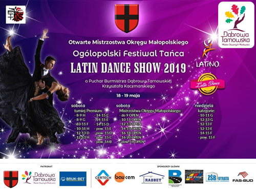 W sobotę 18 maja i niedzielę 19 maja zapraszamy na Otwarte Mistrzostwa Okręgu Małopolskiego - III Ogólnopolski Festiwal Tańca LATIN DANCE SHOW 2019 o Puchar Burmistrza Dąbrowy Tarnowskiej Krzysztofa Kaczmarskiego 2019. Prestiżowy konkurs Latin Dance Show w tańcach jest jednym z największych organizowanych Polsce i odbędzie się właśnie w Dąbrowie Tarnowskiej. W ciągu 2 dniowego turnieju tanecznego zobaczymy wiele par startujących w klasach sportowych. Będą tańczyły pary z najwyższą międzynarodową klasą taneczna S i najwyższa krajową A. Wśród uczestników nie zabraknie tancerzy z naszej gminy, którzy od niespełna dwóch lat trenują pod okiem Gabriela Skiby, trenera i organizatora festiwalu tańca. Turniej organizowany jest pod patronatem Burmistrza Dąbrowy Tarnowskiej Krzysztofa Kaczmarskiego. Zapraszamy 18 i 19 maja 2019 r. na Halę Sportową Agaty Mróz Olszewskiej w Dąbrowie Tarnowskiej. Czytaj dalej