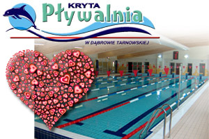 Zapraszamy do aktywnego i nowoczesnego spędzenia walentynkowego wieczoru na Krytej Pływalni w Dąbrowie Tarnowskiej. Walentynkowe zawody pływackie przeprowadzone zostaną w piątek 14 lutego br. o godz. 17:00. Zgłoszenia zawodników przyjmowane będą w Kasie Krytej Pływalni od 16:30 w dniu zawodów. Wstęp uczestników jest bezpłatny. Zwycięzcy zostaną udekorowani słodkimi sercami.