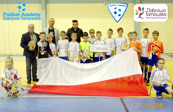 10 listopada 2018 na Hali Sportowej im. Agaty mróz-Olszewskiej w Dąbrowie Tarnowskiej rozpoczęliśmy V Edycję Dąbrowskiej Dębowej Jesieni 2018. Na początek do rywalizacji przystąpili zawodnicy z rocznika 2008, reprezentujący Resovie Rzeszów, Radłovie, Termalikę, Pleśną, Radłovię, Metal Tarnów, FA Lublin oraz gospodarza FA Dabrowa Tarnowska. Całodniowy turniej dostarczył wiele emocji, najlepszą drużyną okazała się Tarnovia Tarnów. Z dobrej strony zaprezentowała się również dąbrowska Football Academy. Na zakończenie Burmistrz Dąbrowy Tarnowskiej Pan Krzysztof Kaczmarski wręczył zawodnikom pamiątkowe medale a wypalane w drzewie grawery każdej drużynie. Nagrodzono również najlepszych zawodników gadżetami Football Academy. Podczas ceremonii zakończenia odśpiewano Hymn Polski dla uczczenia 100 Rocznicy Odzyskania Niepodległości. Kolejne emocje już w najbliższą sobotę. Zapraszamy