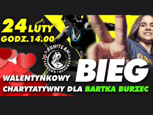 Mottem niedzielnego Charytatywnego Biegu Walentynkowego dla Bartka Burzec, zorganizowanego przez Run Team Dąbrowa Tarnowska, były słowa „... miarą człowieczeństwa jest troska o drugiego człowieka...”. W ramach biegu, w którym uczestniczyło 36 dzieci, 156 dorosłych i nasi niezawodni kibice zebrano 5940 zł na bardzo potrzebną pomoc dla Bartka. W organizacji biegu wzięli udział: Poseł Na Sejm RP Wiesław Krajewski, Burmistrz Dąbrowy Tarnowskiej Krzysztof Kaczmarski, Starosta Dąbrowski Lesław Wieczorek, Przewodnicy Rady Miejskiej w Dąbrowie Tarnowskiej Dariusz Lizak, Komenda Powiatowa Policji w Dąbrowie Tarnowskiej, Jednostki OSP Szarwark, OSP Nieczajna Górna i OSP Smęgorzów, Hotel Cristal Park, Piekarnia Sokołowski, Firma Andrzejek, Mobilni Barmani Damian Błachaniec, Sklep Groszek ul. Szpitalna, Sklep Mrówka, Koła Gospodyń Wiejskich z Grądów i Mędrzechowa oraz Zakład Fotograficzny Multipxel. Czytaj dalej