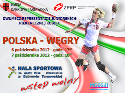 W dniach od 2 – 7 października 2012 r. będziemy mieli przyjemność gościć w Dąbrowie Tarnowskiej kadrę Polski i kadrę Węgier juniorek piłki ręcznej. Treningi będą przeprowadzane w Hali Sportowej im. Agaty Mróz - Olszewskiej. Na zakończenie zgrupowania reprezentacje rozegrają dwa towarzyskie mecze. Chętnych do kibicowania naszej i węgierskiej reprezentacji zapraszamy na dąbrowską halę sobotę – 6 października – godz. 17:00 i w niedzielę – 7 października – godz. 10:00. Wstęp wolny. Serdecznie zapraszamy. Czytaj dalej