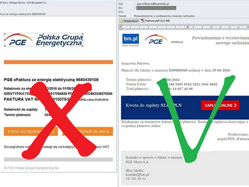 Od pewnego czasu na skrzynki mailowe osób w całym kraju trafiają wiadomości e-mail zatytułowane „eFaktura za energię elektryczną (numer)”. W wiadomości pojawia się informacja, że jest to eFaktura wystawiona przez PGE Polską Grupę Energetyczną. Informujemy, że PGE nie jest nadawcą tych wiadomości, a fałszywy e-mail może stanowić zagrożenie niebezpiecznym wirusem typu „trojan”. Dlatego nie otwieraj wiadomości, dopóki nie upewnisz się, czy to prawdziwa faktura. Czytaj dalej