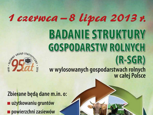 Uprzejmie informujemy, iż w dniach 1 czerwca – 8 lipca 2013 r. w wylosowanych gospodarstwach rolnych w całej Polsce zostaną przeprowadzone następujące badania rolne: