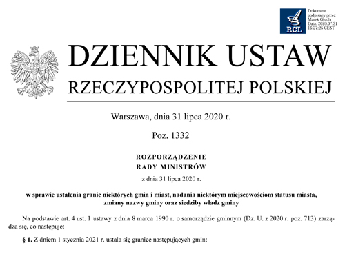 Zgodnie § 3 pkt. 4 rozporządzeniem RADY MINISTRÓW z dnia 31 lipca 2020 r. w sprawie ustalenia granic niektórych gmin i miast, nadania niektórym miejscowościom statusu miasta, zmiany nazwy gminy oraz siedziby władz gminy (Dz. U z 2020 r. poz. 1332) ulegają zmianie ganicie administracyjne miasta Dąbrowa Tarnowska przez włączenie do dotychczasowego obszaru miasta części obszaru obrębu ewidencyjnego Morzychna, o łącznej powierzchni 13,39 ha, z gminy Dąbrowa Tarnowska. Zmiana granic pomiędzy wsią Morzychna w gminie Dąbrowa Tarnowska a Miastem Dąbrowa Tarnowska, przyczyni się do uporządkowania spraw związanych z lokalizacją numerów porządkowych i usankcjonuje dotychczasową więzi społeczne, zarówno infrastrukturalne jak i komunikacyjne z mieszkańcami miasta Dąbrowa Tarnowska. Wnioskowana zmiana granic dokonywana byłą z inicjatywy mieszkańców terenów objętych zmianą. Czytaj dalej