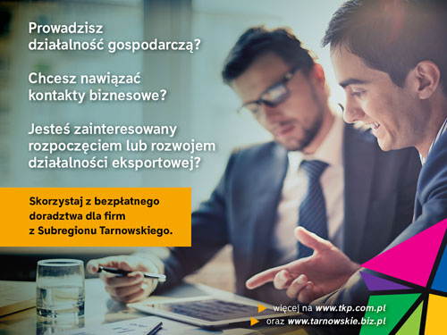 Tarnowski Klaster Przemysłowy S.A. wspiera i promuje przedsiębiorczość poprzez realizację projektu unijnego „Promocja potencjału gospodarczego subregionu tarnowskiego w kraju i na arenie międzynarodowej” Nr RPMP.03.03.01-12-0109/16. Projekt dedykowany jest firmom sektora Małych i Średnich Przedsiębiorstw zainteresowanym poszerzaniem sieci kontaktów biznesowych oraz umiędzynaradawianiem swojej działalności i realizowany jest w partnerstwie 3 instytucji: Fundacja Małopolska Izba Samorządowa, Tarnowski Klaster Przemysłowy S.A. oraz Gmina Brzesko. Czytaj dalej